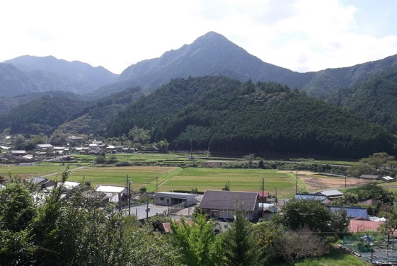 9月11日、高台から町内を撮影。 真ん中の平地は、稲刈り後に